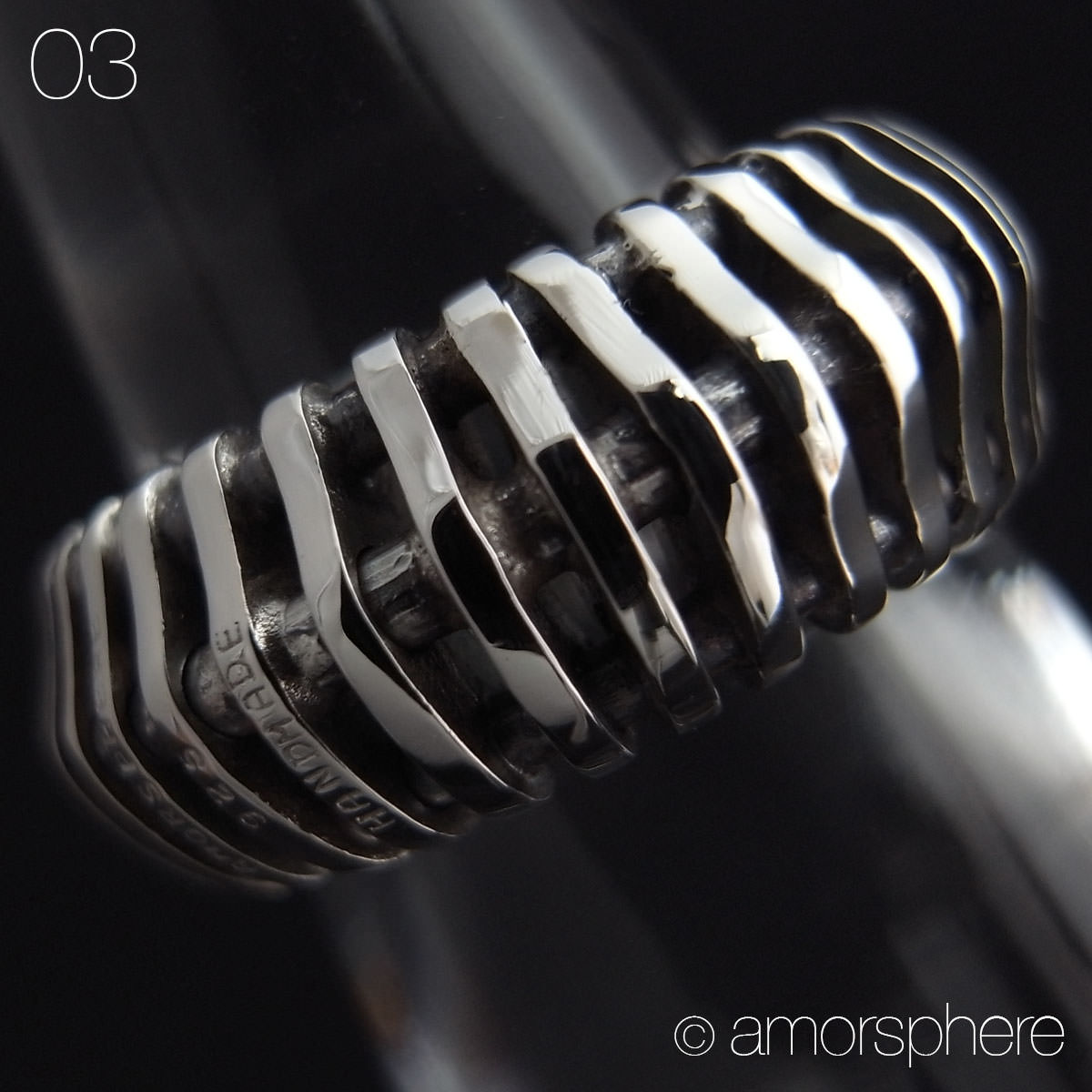 スケルトンの構造が見えないラインを浮かび上がらせます。指輪の中に存在する無数の空間がこの指輪の中に小宇宙を生み出すかのように。