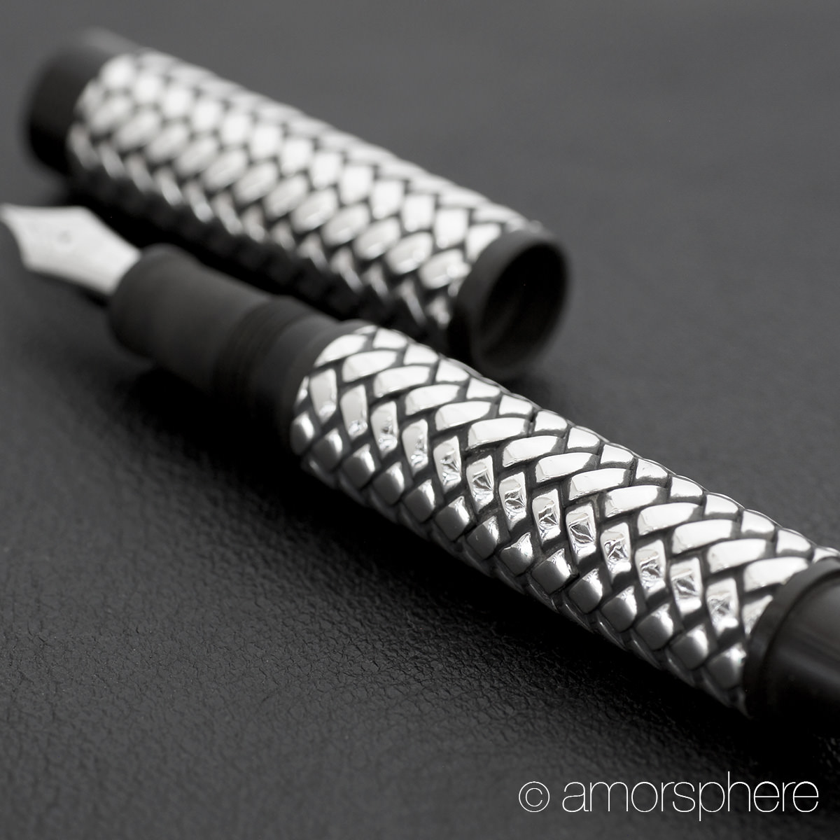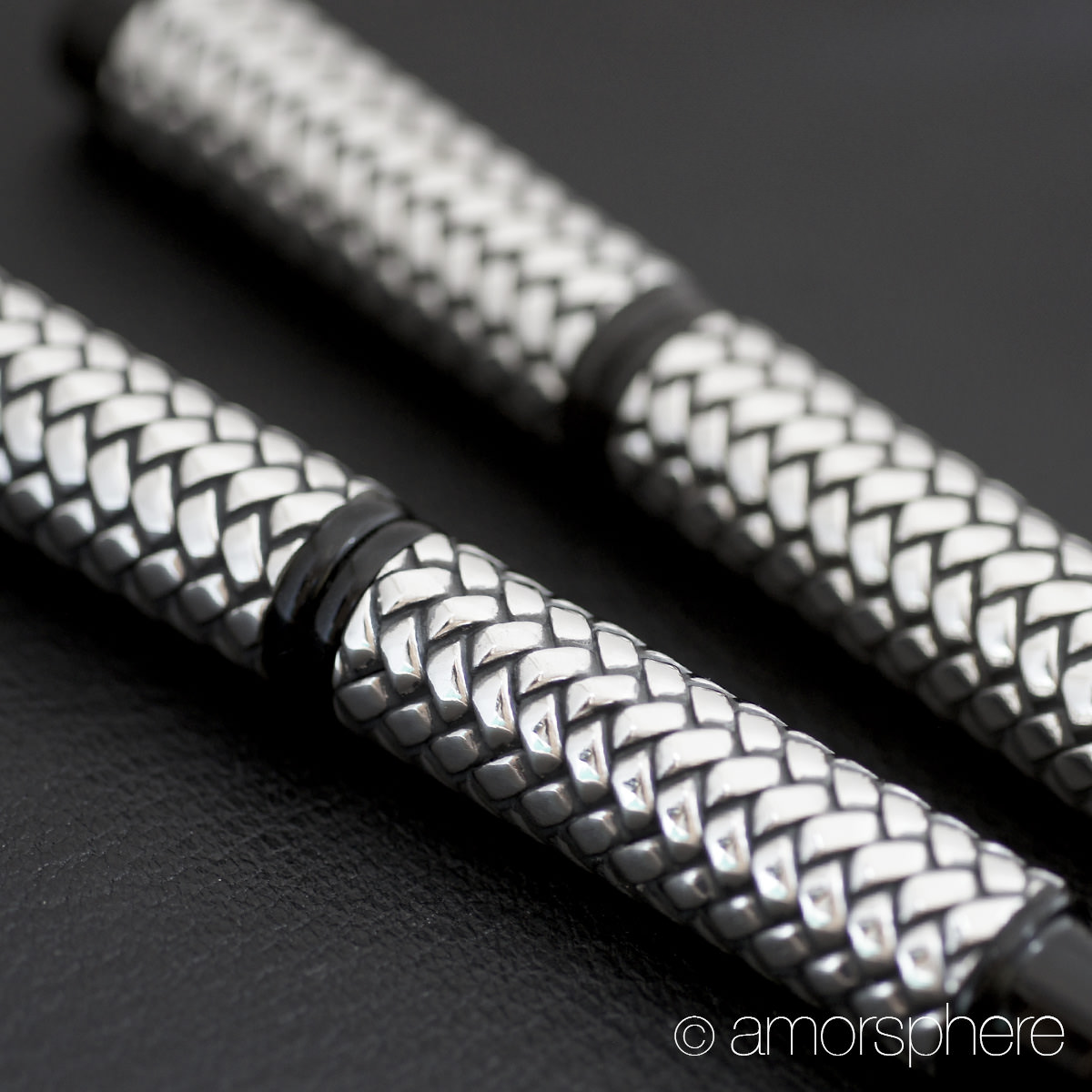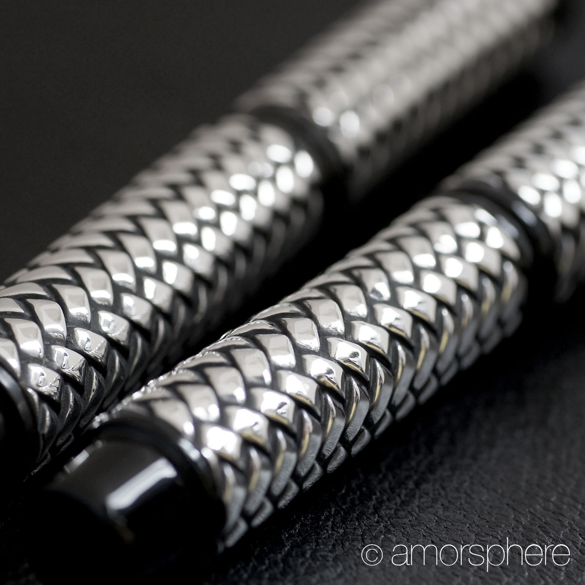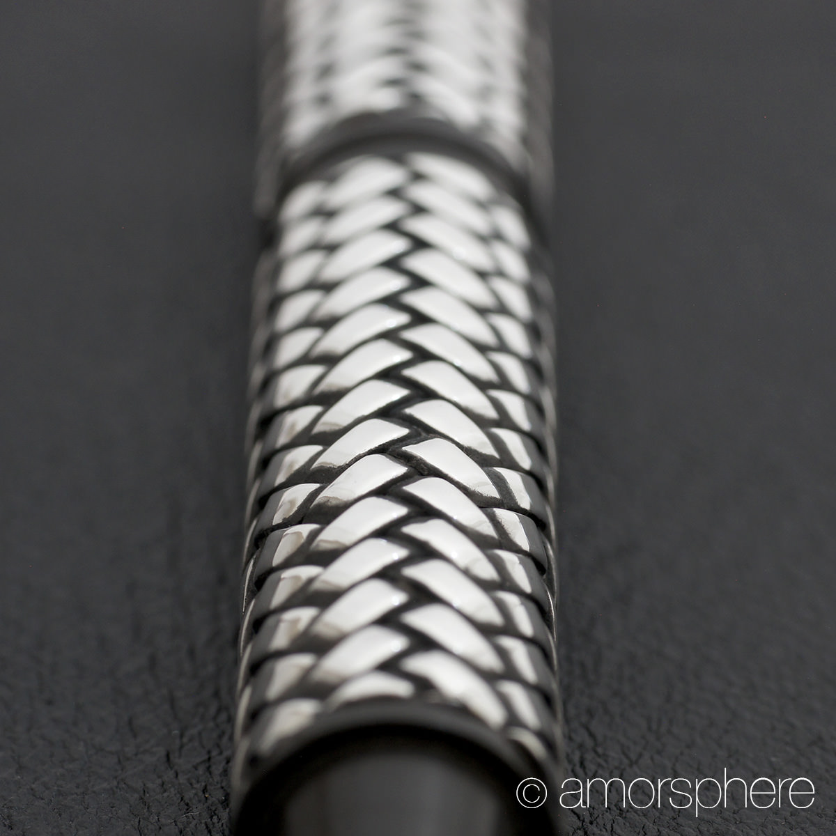 漆とはまた趣が異なり燻して黒くなるシルバーの特性を生かした立体的な網代模様は想像以上に美しい。